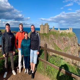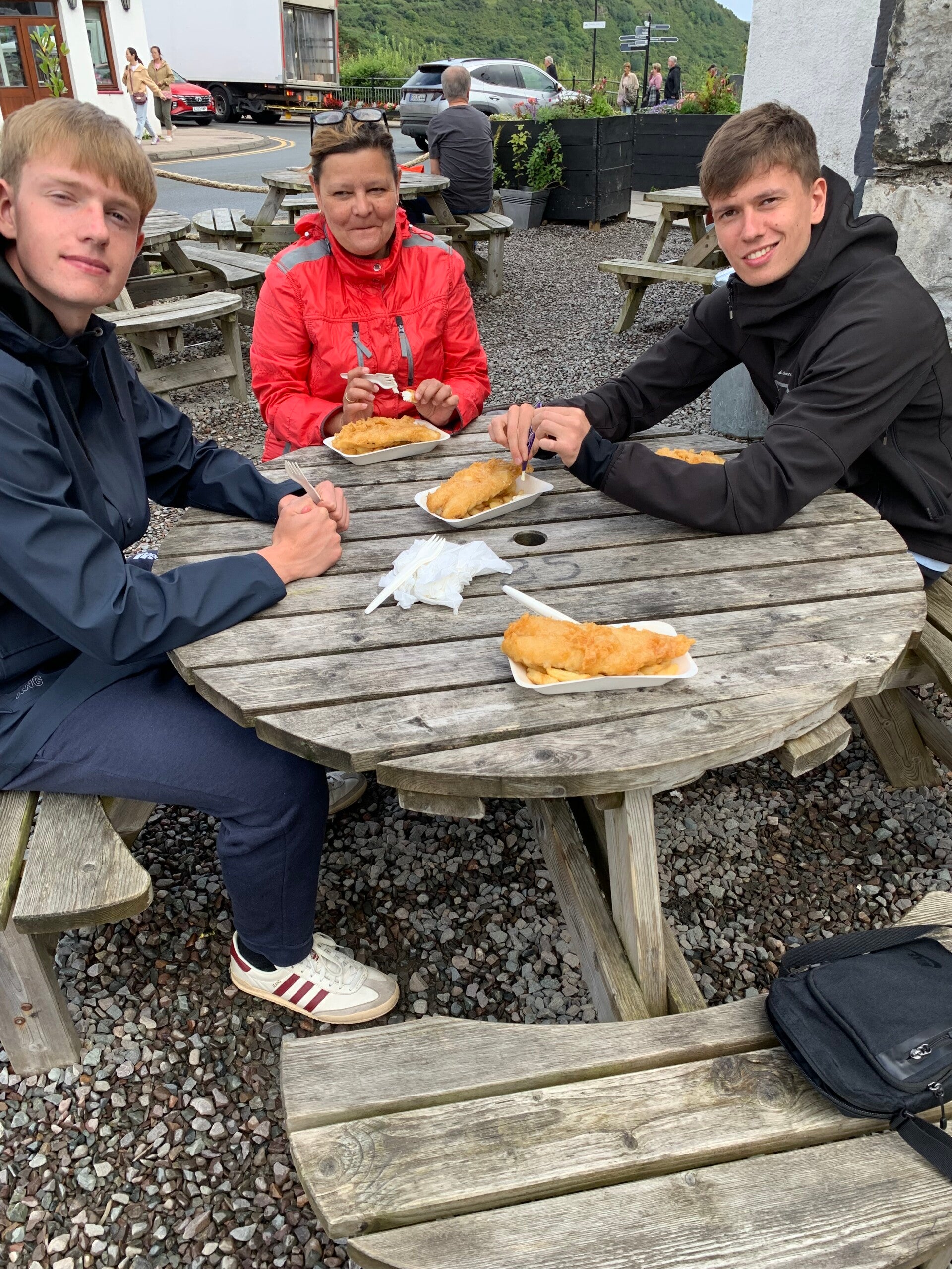 Dienstag: Nach dem Service (Grauwasser ablassen, Frischwasser aufnehmen und Toilette leeren) sind wir Richtung Aberdeen gestartet. Zuerst mussten wir doch noch die kleine Brücke passieren, weil die Umfahrung gesperrt war. Hat funktioniert, Foto hiervon gibt es leider nicht. Zwischenstopp in Stonehaven, hier gibt es im preisgekrönten Take Away Shop "The Bay" frisch zubereitete Fish & Chips und nach einem Stadtrundgang lecker Eis bei Aunty Betty's. 🍦Anschließend ging es noch zur Ruine des Dunnottar Castle und zum Stonehaven Kriegsdenkmal. Und so wie es im Moment aussieht bleiben wir über Nacht mit zwei weiteren WoMos hier stehen und fahren dann morgen früh nach Aberdeen weiter.
