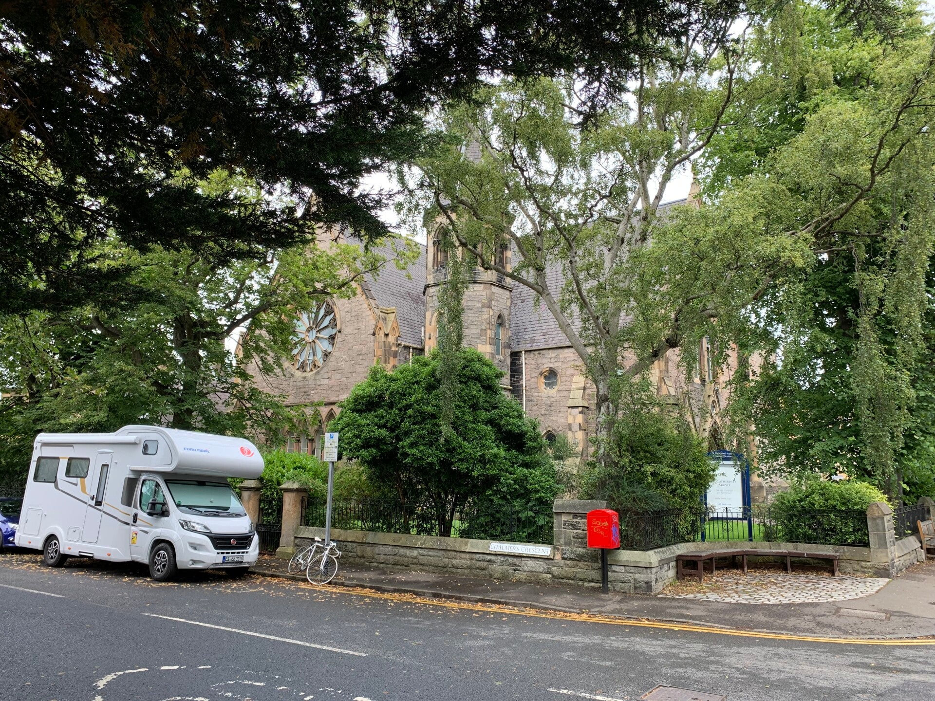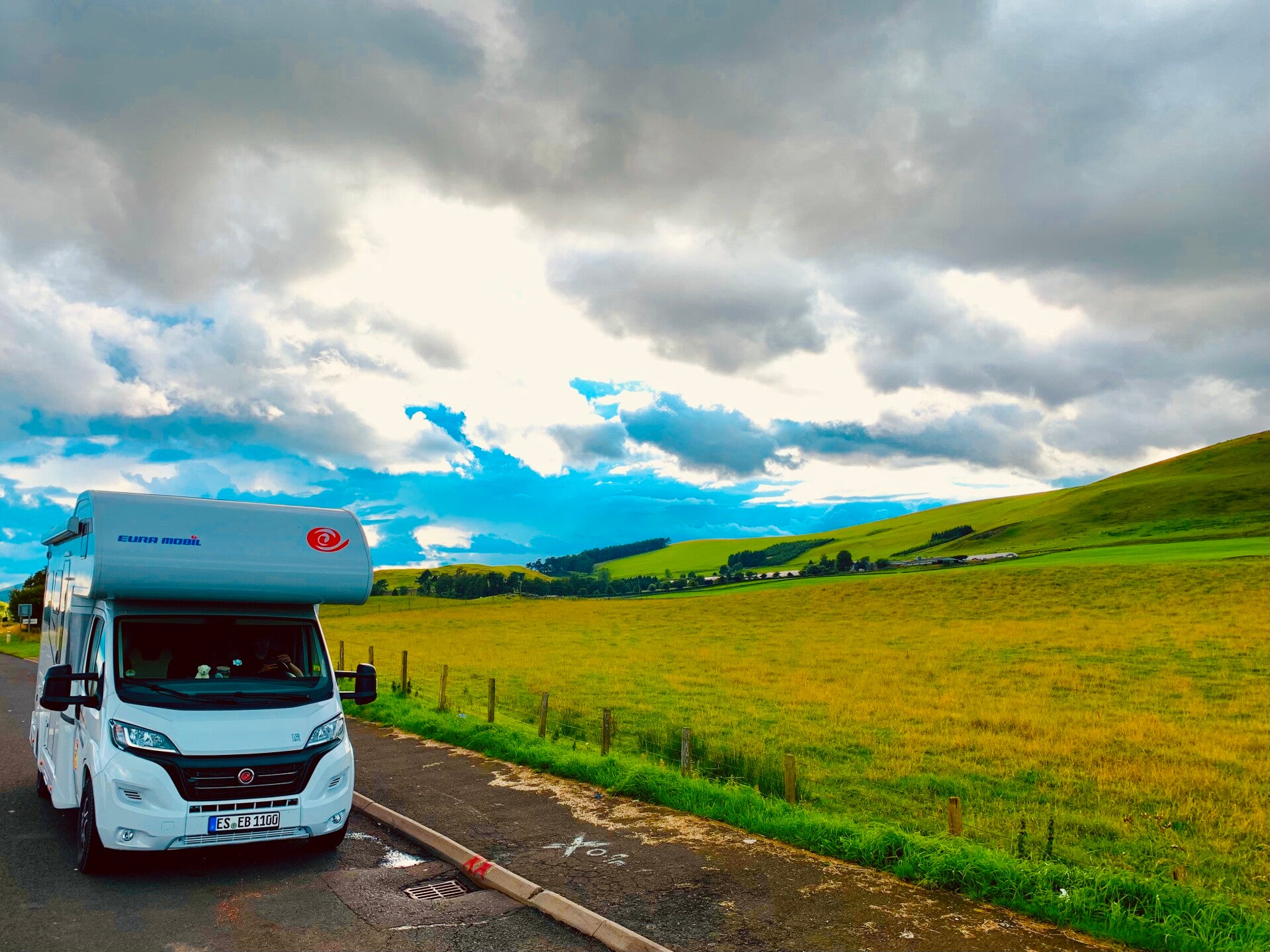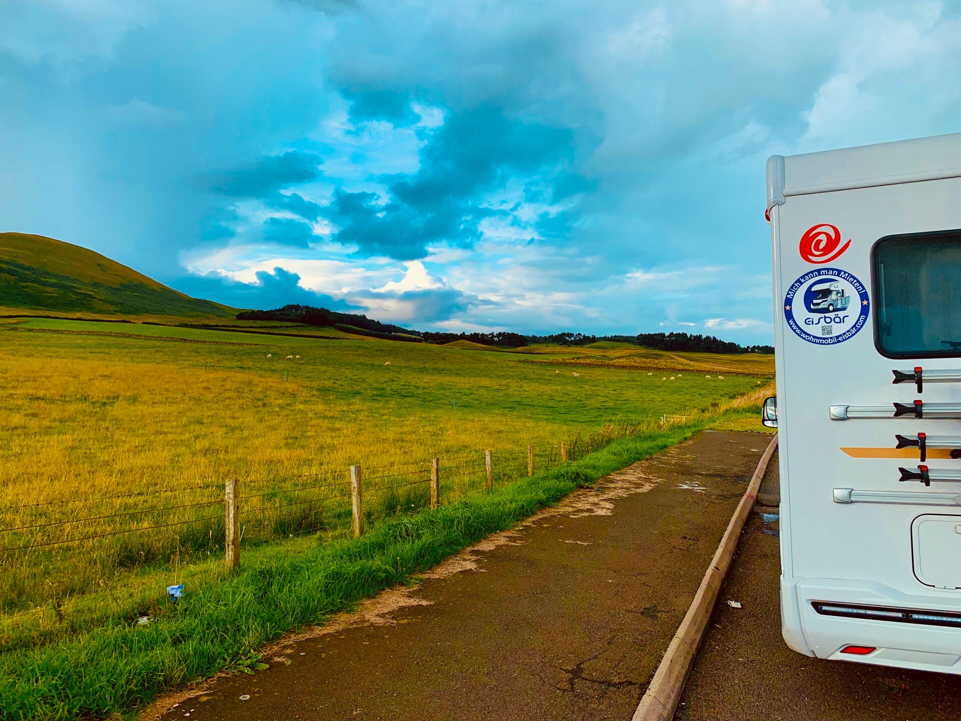 Die letzte Nacht verbrachten wir auf einem Parkplatz in einer Seitenstraße im Vorort von Manchester. Das Umfeld sah hier nicht sehr vertrauenswürdig aus. 😱 War letztlich aber kein Problem. Nach dem Besuch des Etihad Stadium und natürlich dem Fanshop von Manchester City ging es weiter auf der M6 nach Norden und ab Abington durch das Clyde Valley bis Edinburgh. Die Unterkunftsuche hier gestaltete sich als ziemliche Herausforderung, da anscheinend Edinburgh wegen des jährlichen Künstlerfestivals komplett ausgebucht ist. Wir dürfen nun für eine Nacht vor einem eigentlich schönen Campingplatz bleiben und müssen morgen aber bis Mittag den Platz wieder räumen.