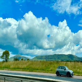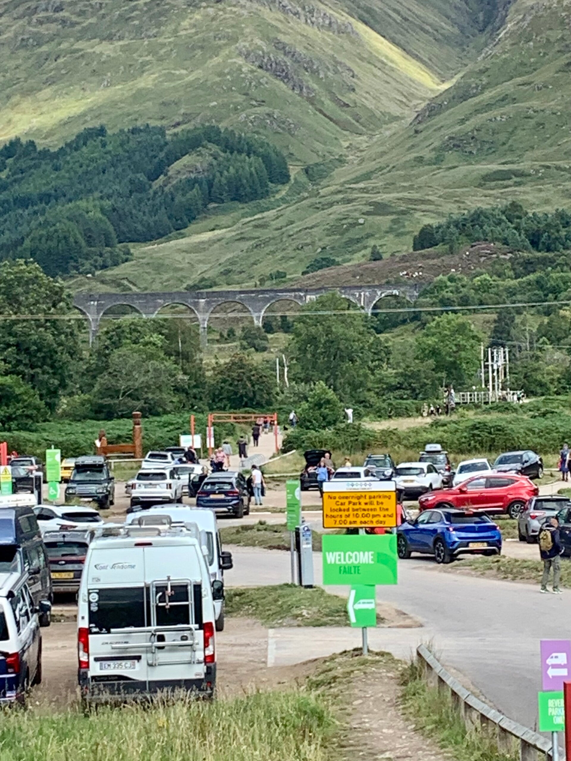 Dienstag: Ab jetzt geht's nur noch in Richtung Süden. Unterwegs wollten wir noch einen Abstecher zum Glenfinnan Viaduct machen, aber hier waren alle Parkplätze und Zufahrtsstraßen zugeparkt - keine Chance mit dem WoMo einen Platz zu finden. Also ging es weiter in Richtung Glasgow, vorbei am wolkenverhangenen Ben Nevis (höchster Berg Großbritanniens, 1345m) und mit einem kurzen Stopp am Loch Lomond - sehr schön. In Glasgow übernachten wir in der Stadt auf einem großen Parkplatz am River Clyde und gehen ins Hard Rock Café zum Burgeressen 🍔. 😋 Später geht's dann dem Fluss entlang zurück zum WoMo.
