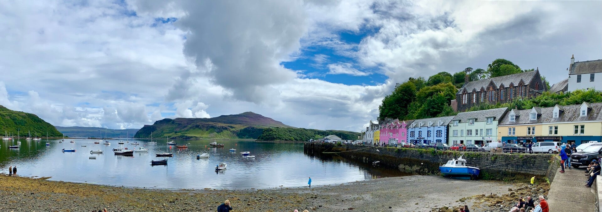 Nächster Halt war die Hafenstadt Portree. Portree ist quasi die Hauptstadt der Insel Skye und hat einen hübschen gezeitenabhängigen Hafen mit bunten Häusern. Der Hafen selber wird durch eine Bucht gebildet. Nach einer Portion Fish & Chips (der Fischanteil war hier deutlich größer als bei anderen Anbietern 👍) und einem kurzen Bummel durch die kleine Stadt ging es wieder weiter nach Norden.