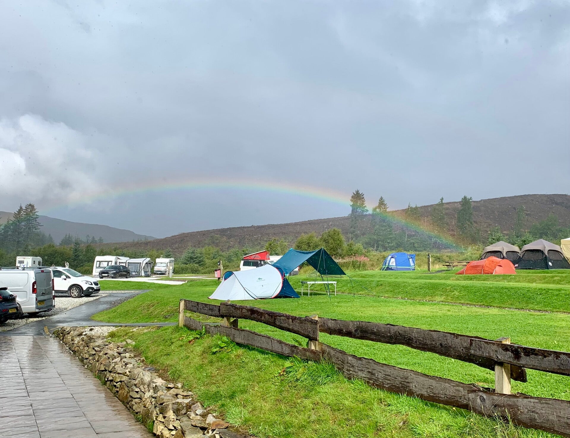 Sonntag, der 13.08.: Wir checken beim Campingplatz aus und fahren am Loch Ness entlang. In Invermoriston entdecken wir wieder eine alte Steinbrücke und werfen den Anker aus. Die Besichtigung verbinden wir gleich mit der Mittagspause und fahren dann weiter in Richtung Westen über die Westhighlands. Ziel ist das Eilean Donan Castle, welches bereits Filmkulisse bei "Highlander" und "James Bond" war. Die Besichtigung lohnt sich, man erfährt einiges über die Geschichte des Castles die Zerstörung, den Wiederaufbau durch die Familie McRae und auch über die Familie selbst, die das Castle immer noch in Besitz hat. Abends wird das Castle beleuchtet, aber so lange können wir nicht warten und fahren weiter in Richtung der Insel Skye, die zu den inneren Hebriden zählt. Begrüßt werden wir mit Regen und wir suchen in Broadford den Campingplatz auf. Ein Stellplatz ist noch frei und wir checken ein. Ariete und ich gehen dann noch kurz im Regen einkaufen.