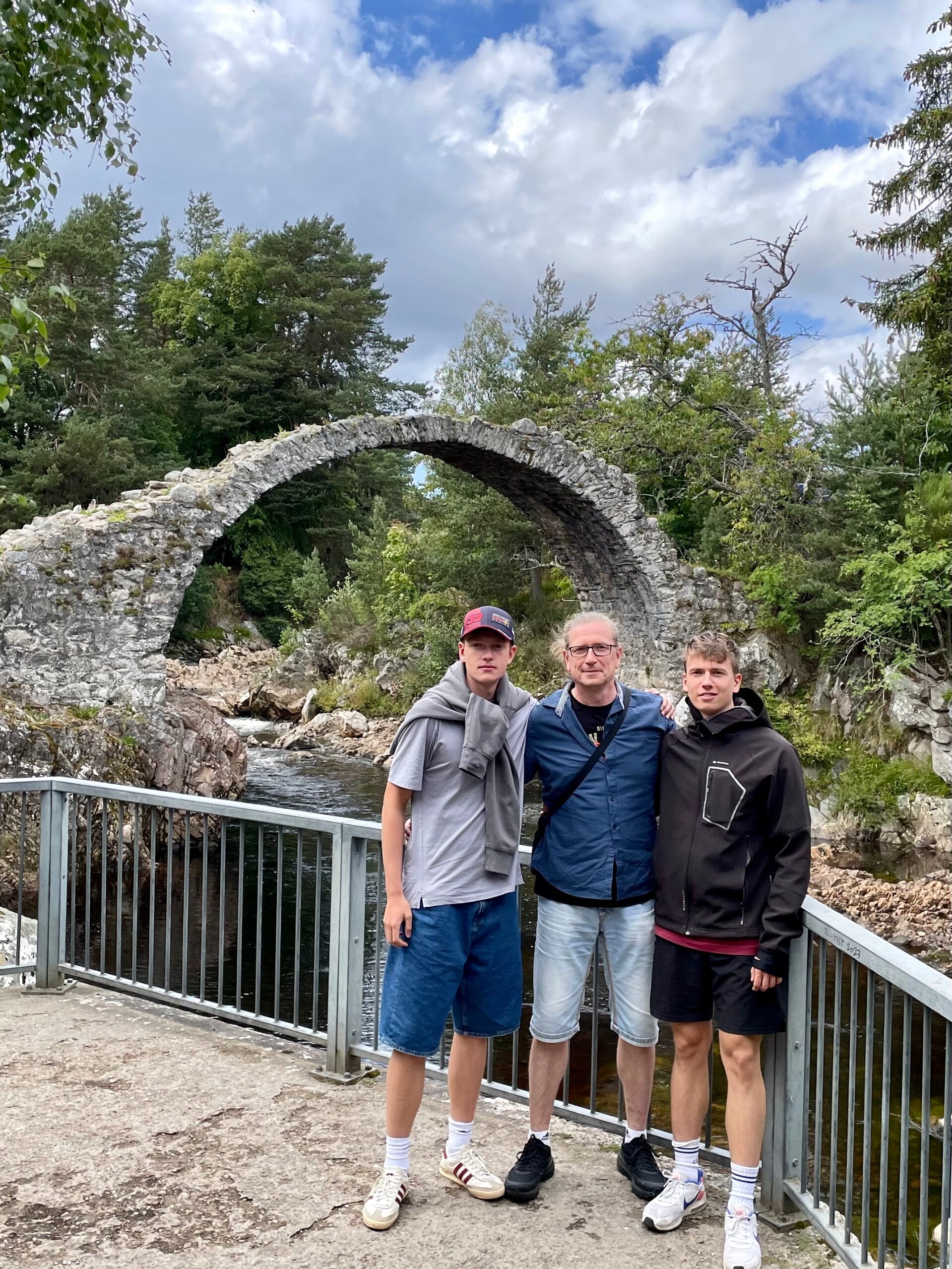 Freitag: Abreise von Dufftown in Richtung Inverness. Gleich im Nachbarort der erste Stopp beim Walker Fabrikverkauf, hier decken wir uns mit originalem Shortbread ein. Später lesen wir unterwegs den Hinweis zur ältesten Brücke in den Highlands und folgen diesem. Dabei stolpern wir über einen gemütlichen Rastplatz am River Dulnain und machen erstmal Mittach. Die Brücke "Carrbridge" finden wir dann auch noch und machen unsere Fotos bevor es weiter in Richtung Inverness geht. Hier erkunden wir die Altstadt, die direkt am Fluss Ness und quasi an der nördlichsten Spitze von Loch Ness liegt. Die Altstadt hat sehr schöne Häuser, allerdings wurden einige nicht so schöne Häuser dazwischen gepackt. 👎 Wir fahren jetzt doch nicht weiter dem Loch Ness entlang und bleiben hier legal über Nacht auf einem Parkplatz am Ness stehen und machen noch einen schönen Abendspaziergang dem Fluss entlang. Ariete und ich lassen den Abend bei Live-Musik, Cider und Red Kite Ale ausklingen.