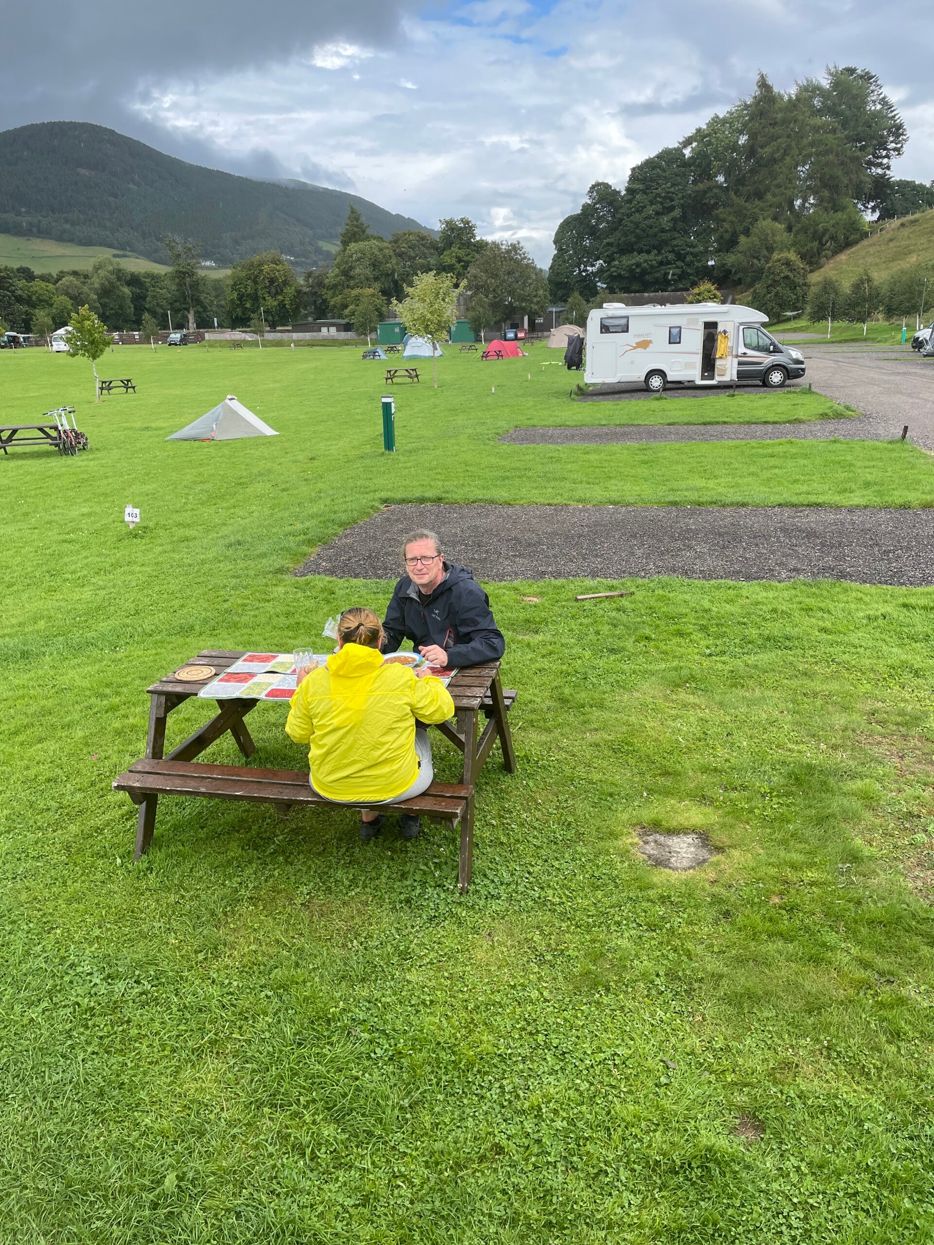 Heute ist das Wetter so gut, dass wir draußen frühstücken können. Dann sind wir losgezogen und haben die Glenfiddich Distillery besucht und probiert. In Dufftown selber ist tote Hose und auch das Café am Bahnhof hatte bereits 16:00 geschlossen. Also gabs den Kaffee auf dem Campingplatz und der Rest des Tages wird gechillt.