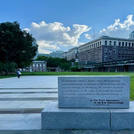 Nur die Straße überqueren und schon steht man vor den geschichtsträchtigen Gebäuden Philadelphias - wie der Independence Hall, der Congress Hall und der Liberty Bell. Hier wurde 1776 die Unabhängigkeit gegenüber England beschlossen und ausgerufen, sowie die Verfassung erarbeitet und beschlossen - quasi die Geburtsstunde der USA. Philadelphia war nach New York (zwei Jahre) bis zur Fertigstellung von Washington, D.C. auch für zehn Jahre die Hauptstadt der USA.